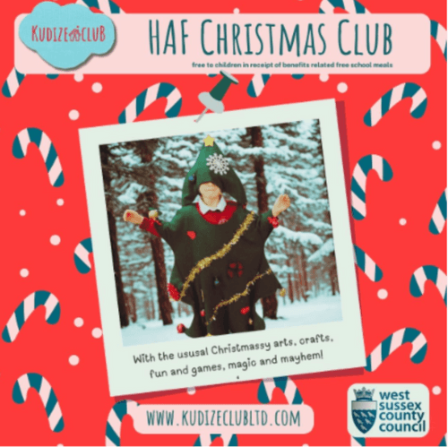 | Details | Kudize Club are running a fun-packed, festive filled HAF Holiday Club, FREE for children who are entitled to benefits related free school meals, on Monday 22nd and Tuesday 23rd December, as well as Friday 2nd January. Running 8.45am until 3.15pm. What is HAF? HAF is a government funded programme which offers children who are entitled to benefits related free school meals the opportunity to attend participating holiday activity clubs and have a free meal. Not sure if you are eligible for HAF? For more info on HAF, including how to check to see if your child is eligible and how to book, visit the dedicated webpage, https://www.westsussex.gov.uk/education-children-and-families/support-for-families/holiday-activities-and-food-programme/?fbclid=IwY2xjawObwGJleHRuA2FlbQIxMABicmlkETEwWmQ0YTJuSEIxRFFwWGZrc3J0YwZhcHBfaWQQMjIyMDM5MTc4ODIwMDg5MgABHqSJw4qy-uBgQDYddW6SPGV90LYdZTYBk5wjE-LQBoI1ZN8GLAoDPW_4qNaR_aem_ht-GHXkhIZdexstWfgNsig#how-to-access-haf |